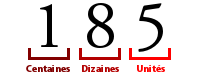 Ce que je viens de faire, c'est décomposer 185 en puissance de 10 (unités, dizaines, centaines, etc).