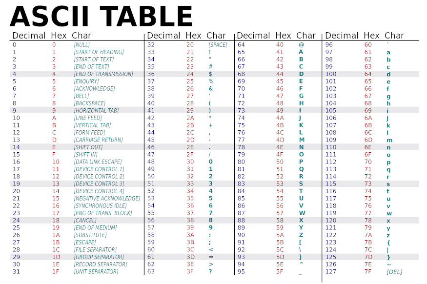 - La plupart des textes sont écrits avec les caractères initiaux du code ASCIII.