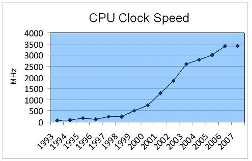 Comme vous pouvez le remarquer sur le graphique ci-dessus, à partir de 2006 environ, la fréquence d'horloge a cessé d'augmenter, pourquoi ? À cause d'une contrainte physique : en effet plus on augmente la fréquence d'horloge d'un CPU, plus ce dernier chauffe. Il devenait difficile de refroidir le CPU, les constructeurs de microprocesseurs (principalement Intel et AMD) ont décidé d'arrêter la course à l'augmentation de la fréquence d'horloge, ils ont décidé d'adopter une nouvelle tactique.