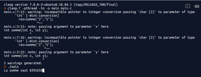 N.B : certains compilateurs C ne renvoient pas d'erreur dans la situation décrite ci-dessus, juste un avertissement ("warning")
