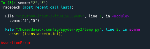 Nous pouvons mettre en place des tests pour cette fonction (on parle de "tests unitaires") à l'aide d'assertions :