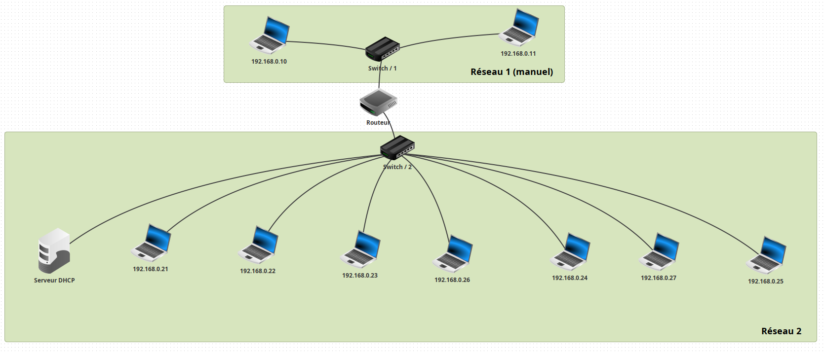 Le but de cet exercice est de voir l'intérêt d'un serveur DHCP (Dynamic Host Configuration Protocol). Comme son nom l'indique, ce protocole est chargé d'attribuer dynamiquement des adresses IP aux machines, à l'intérieur d'une place que l'on fixe.