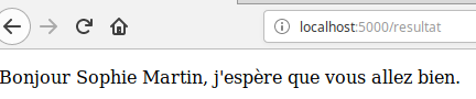 Après avoir relancé "views.py", testez cet exemple en saisissant "localhost:5000" dans la barre d'adresse de votre navigateur web.